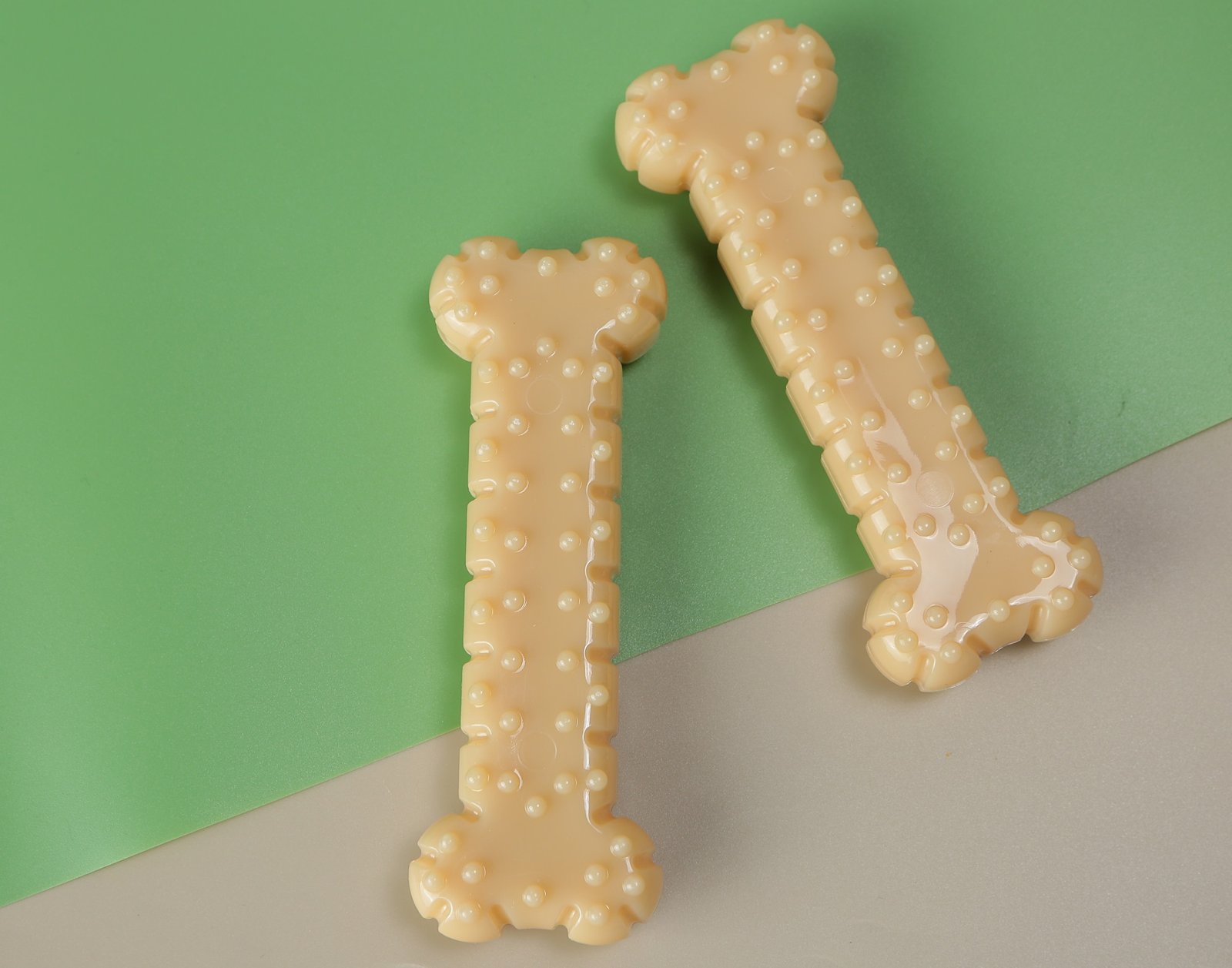 Features peanut butter flavor, dual-texture design with ridges and nubs for plaque control, and gentle&durable construction.