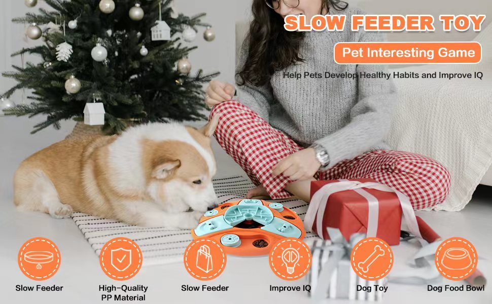 This interactive puzzle toy slows feeding and stimulates pets mentally through treat-seeking games.